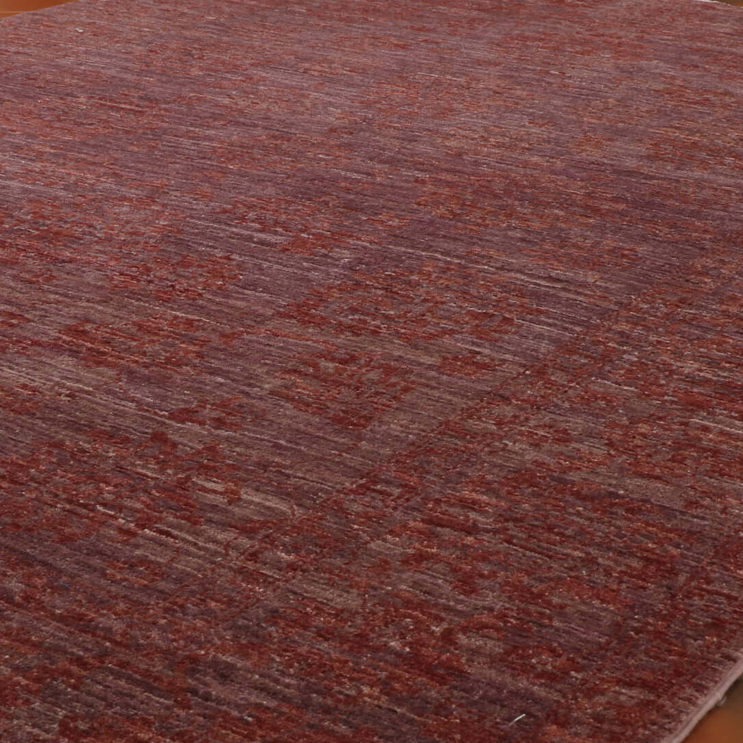 This could be your rug if you want something completely different with minimal colours. It is an extremely unusual Fine Afghan Ziegler in two-tone colouring. It has a Heather pink background with a contrasting deeper shade of floral decoration. It is made with beautiful quality wool, which has a lovely sheen.