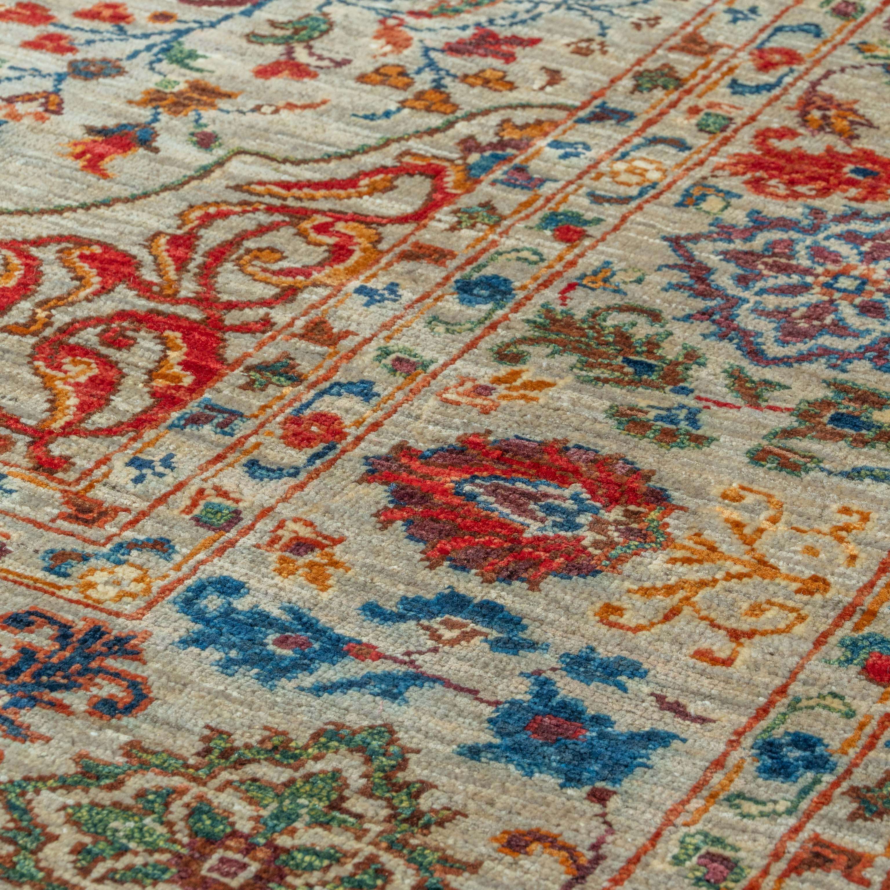 Today, in Afghanistan, there is very little production of exceptionally fine Afghan rugs made to replicate the fineness of the originals. However, the wonderful colours that they have chosen give it a more modern feel. It is handmade using vegetable-dyed handspun wool onto a cotton foundation. This truly is a stunning rug and a firm favourite with all of us at Jennings Rugs.