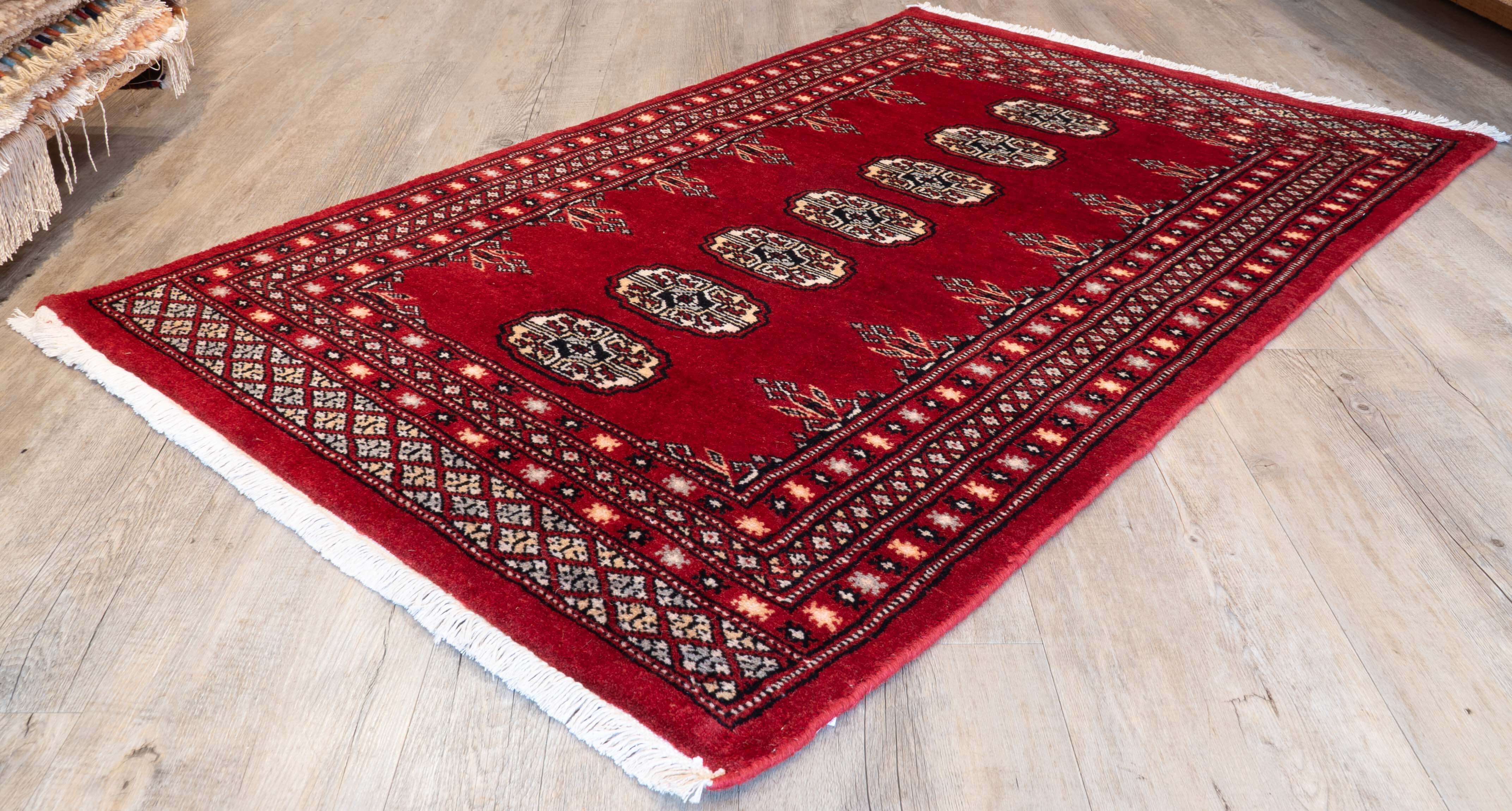 Pakistan Bokhara rugs are hand-woven using soft wool, sometimes imported from New Zealand, on a white cotton warp and weft. This gives the carpet a touch similar to silk but with a much longer pile. These rugs offer great value for money as production is considered easier than other carpet manufacturing processes.