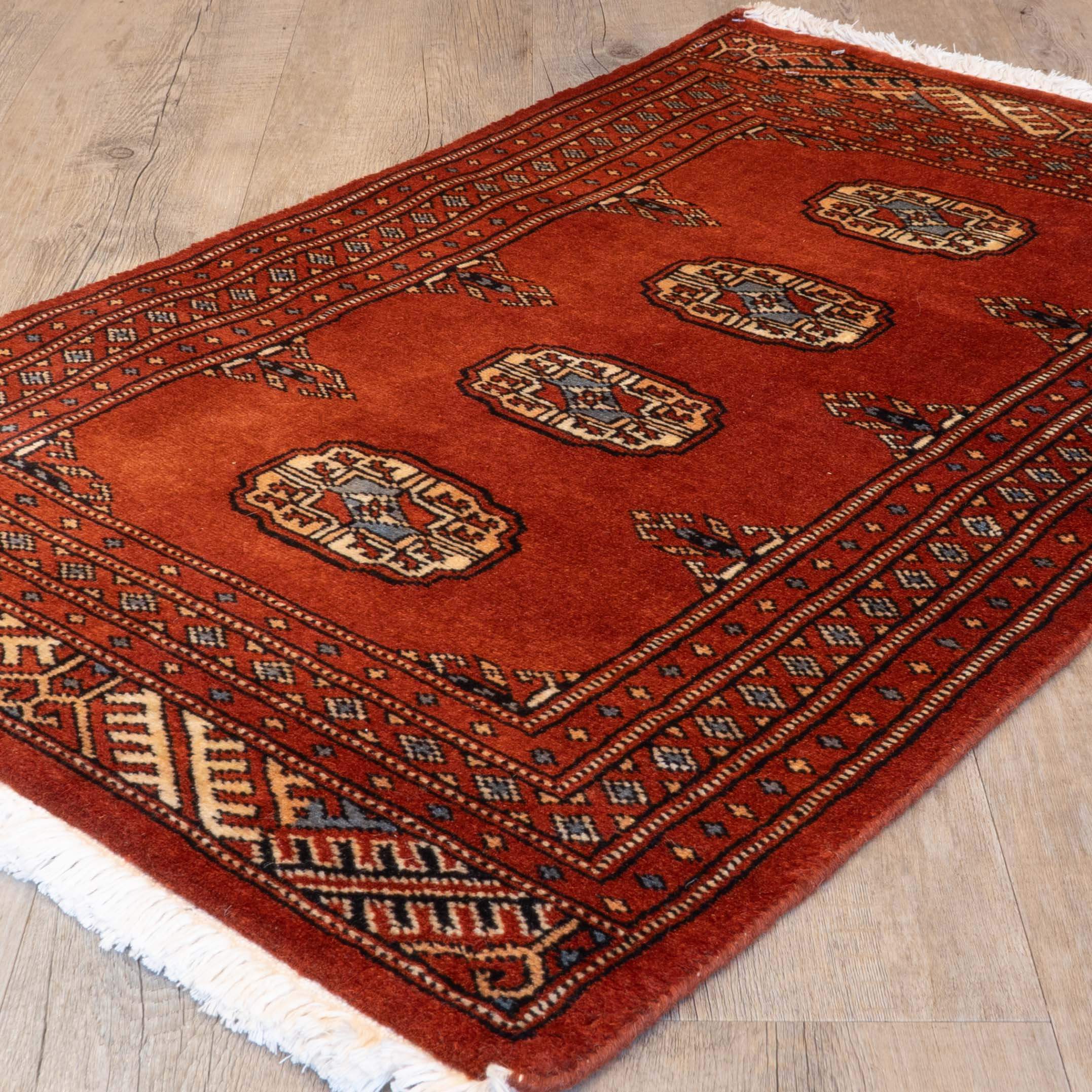 These rugs are handmade in the surrounding villages of Lahore in northern Pakistan. They are available in a wide range of sizes and colours, representing excellent value for money. They feel luxurious with their soft, silky texture and beautiful sheen.Please click the hyperlinks below if you are interested in additional information.This Pakistan Bokhara rug is finely knotted in a traditional design using lovely, soft, silky wool. The Bokhara rugs are always made with a wool pile, but unfortunately, some people try to pass them off as silk. Handmade Bokhara rugs offer excellent value.The well-known Bokhara design originates from Uzbekistan, where...