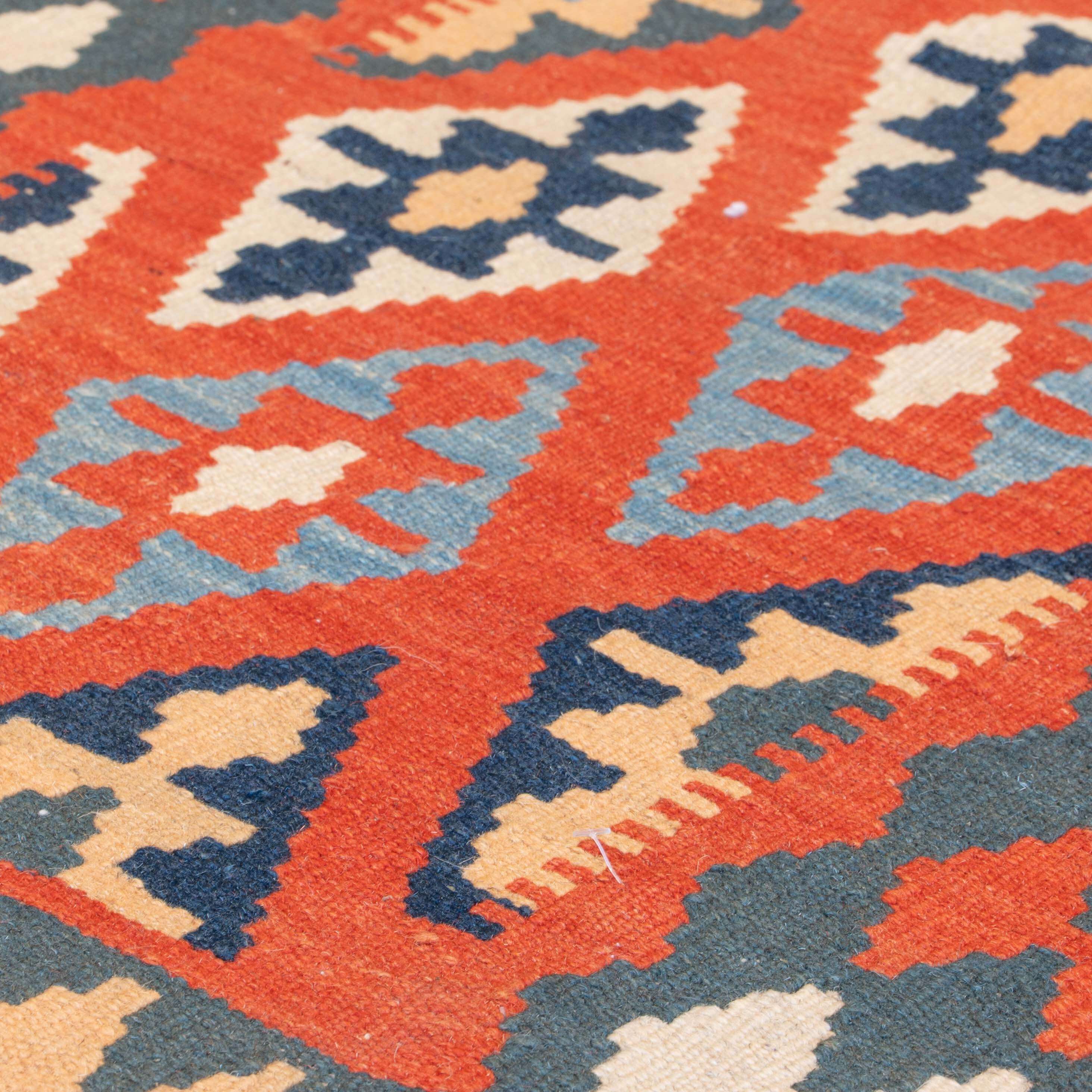This authentic Qashqai kilim represents generations of nomadic weaving tradition, handcrafted from pure wool and dyed with time-honoured vegetable dyes. Each piece showcases vibrant, naturally-derived colours that develop character over time, making it a distinctive focal point for any interior. Versatile by design, it performs beautifully as a floor covering whilst its striking patterns translate equally well to a wall display. A genuine investment in artisanal craftsmanship that offers exceptional value without compromise on quality or authenticity.