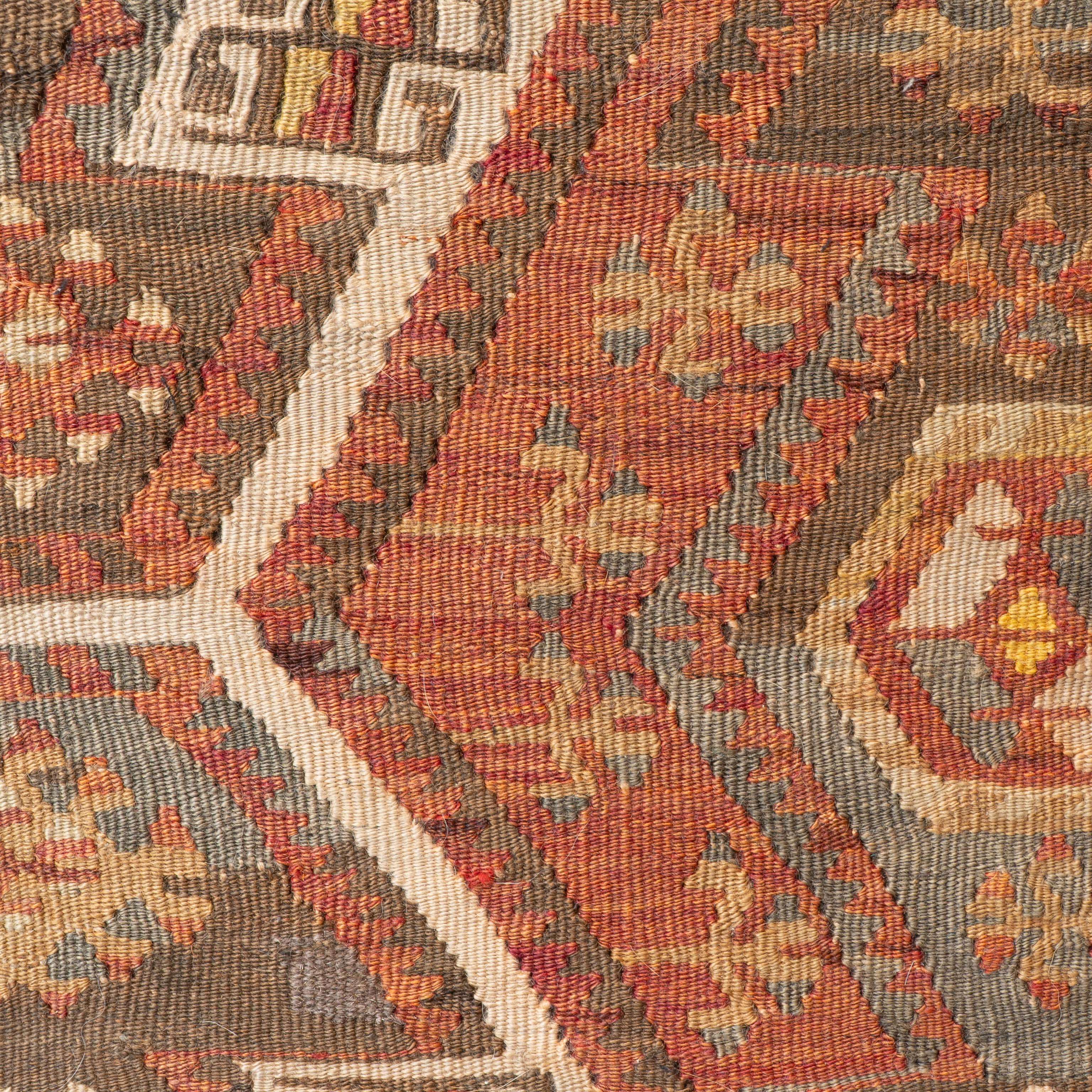 This long bench is another great, unique furnishing piece, as the fabric is old, repurposed Turkish floor Kilim. Although the kilim is old, it will remain a serviceable, valued item for many years. Moreover, the old kilim looks much better over time; the colours are much softer, and age, in this instance, is kind.